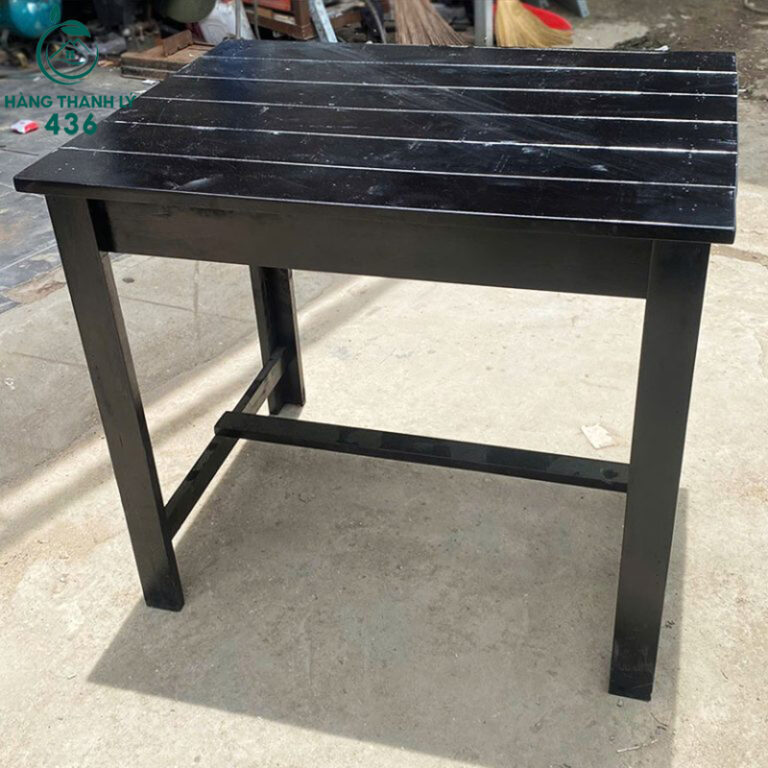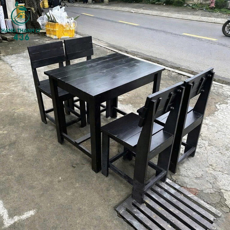 Mô Tả: Sản phẩm là bộ bàn ghế được chế tác từ chất liệu gỗ thông tự nhiên đã qua xử lý tỉ mỉ để đảm bảo độ bền chắc và khả năng chịu lực cao. Bề mặt gỗ được phủ lớp sơn màu đen lịch sự, giúp bộ sản phẩm không chỉ bền bỉ mà còn rất dễ dàng phối hợp với nhiều phong cách nội thất khác nhau. Thiết kế ghế có phần tựa lưng cao và mặt ngồi rộng rãi, tạo cảm giác thoải mái tối đa cho người sử dụng trong thời gian dài. Bộ sản phẩm gồm một bàn chữ nhật và bốn ghế đơn đồng bộ, cực kỳ phù hợp cho các quán cafe, quán trà sữa hoặc quán ăn có phong cách hiện đại. Với mức giá thanh lý vô cùng ưu đãi, đây là giải pháp tối ưu để trang bị nội thất chuyên nghiệp cho cửa hàng của bạn.