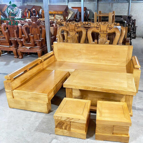 Gỗ hương có màu nâu đỏ, vân gỗ đẹp mắt và tỏa ra hương thơm nhẹ. Đây là loại gỗ quý, có độ bền cao, chống mối mọt và ít bị cong vênh theo thời gian. Thường dùng để chế tác các bộ salon cao cấp, sang trọng, phù hợp với phòng khách có phong cách truyền thống hoặc cổ điển.Salon gỗ sồi