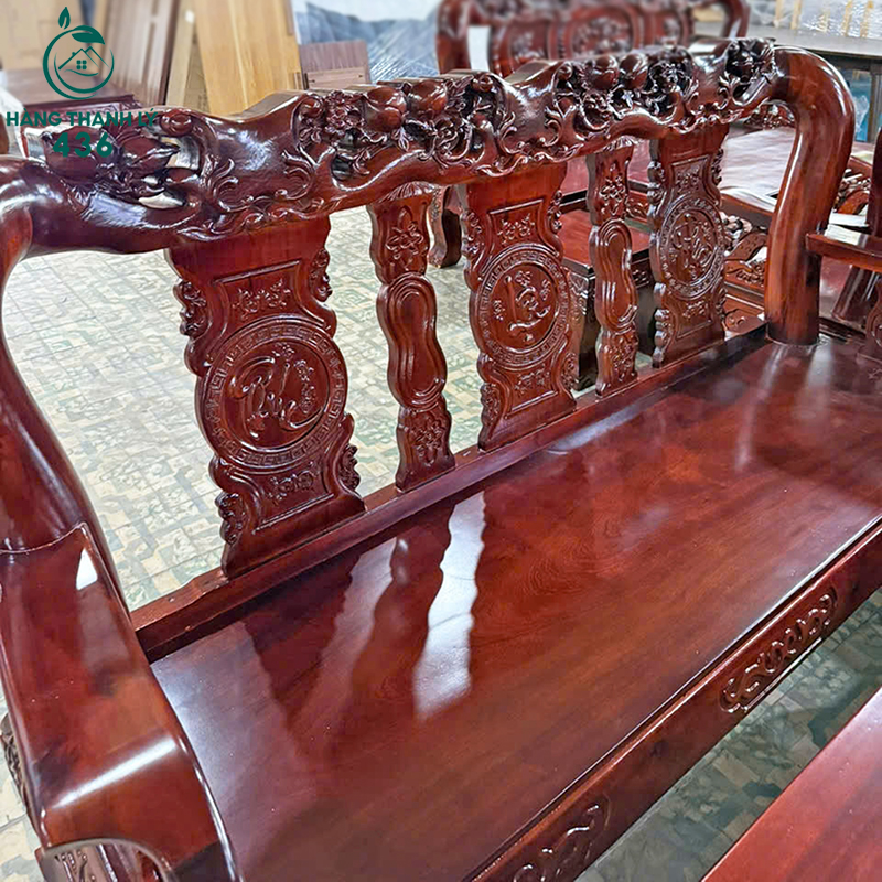- Mô tả: Bộ salon gỗ tay 12 chạm khắc Phú Quý – Phúc Lộc Thọ với kiểu dáng cổ điển, gỗ dày nặng tay, rất chắc chắn. Họa tiết được đục thủ công sắc sảo, thể hiện sự sang trọng và đẳng cấp. Bộ ghế gồm ghế băng dài, ghế đơn, bàn chính và bàn phụ đầy đủ, phù hợp không gian phòng khách lớn. Tay ghế to, ngồi chắc chắn, mặt bàn rộng, dễ bố trí ấm chén hoặc vật trang trí. Đây là mẫu ghế dành cho ai yêu thích phong cách truyền thống và độ bền lâu dài.