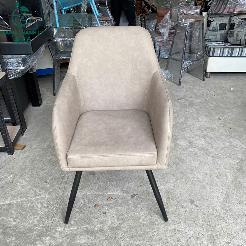 Mô Tả: Mẫu ghế cafe này mang phong cách hiện đại với tông màu be trang nhã, dễ dàng tạo điểm nhấn cho bất kỳ không gian quán cafe, nhà hàng hay phòng ăn gia đình nào. Toàn bộ thân ghế từ tựa lưng đến mặt ngồi và tay vịn đều được bọc nệm da simili dày dặn, mang lại cảm giác ngồi cực kỳ êm ái và thư giãn. Thiết kế bo cong tinh tế giúp ôm trọn vóc dáng người ngồi, đồng thời chất liệu da simili giúp việc vệ sinh, lau chùi trở nên nhanh chóng và đơn giản. Khung chân sắt sơn tĩnh điện dạng hình chóp mang lại sự vững chãi, chắc chắn và có khả năng chịu lực tốt trong quá trình sử dụng lâu dài.