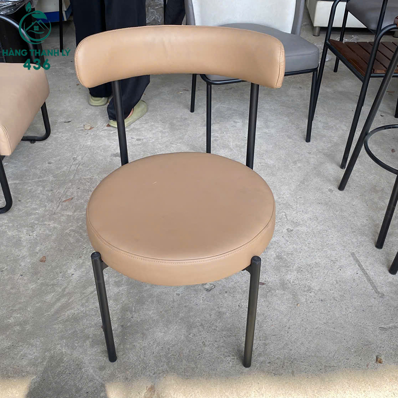 Mô Tả: Mẫu ghế này mang phong cách hiện đại với điểm nhấn là phần mặt ngồi hình tròn độc đáo, tạo cảm giác mềm mại và thoải mái cho người sử dụng. Phần tựa lưng cũng được bọc nệm da simili cao cấp màu nâu nhạt đồng bộ, giúp hỗ trợ cột sống tốt và rất dễ dàng lau chùi khi bám bẩn. Khung chân sắt được sơn tĩnh điện màu đen chắc chắn, đảm bảo độ bền cao và không bị rỉ sét theo thời gian. Với kích thước nhỏ gọn và kiểu dáng thanh lịch, sản phẩm cực kỳ phù hợp cho các quán cafe máy lạnh, studio hoặc làm ghế ngồi trang điểm trong gia đình giúp tối ưu không gian sống.
