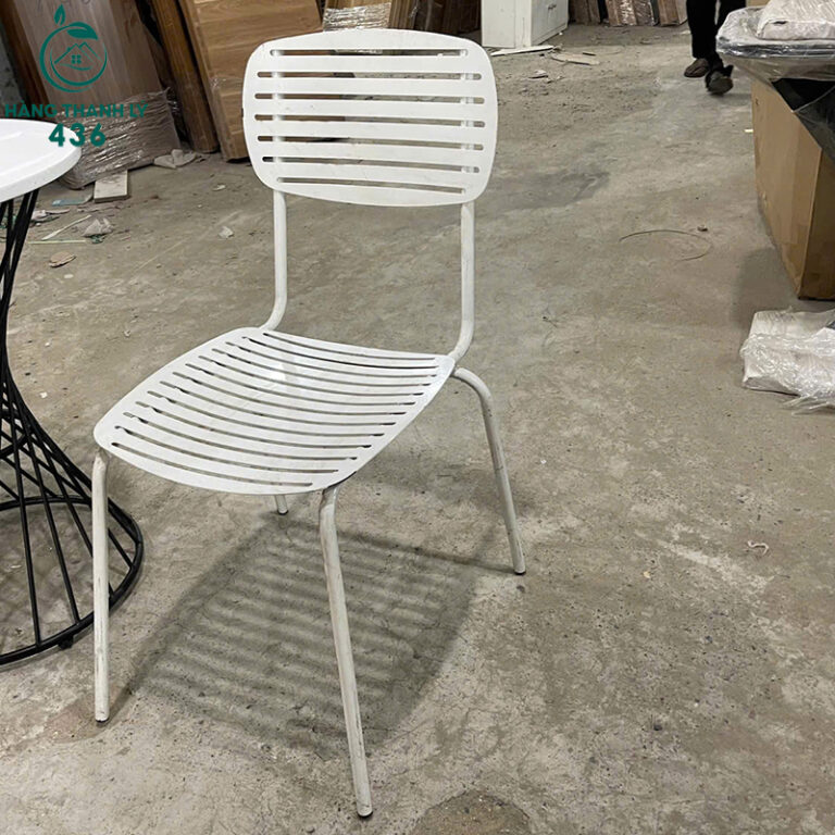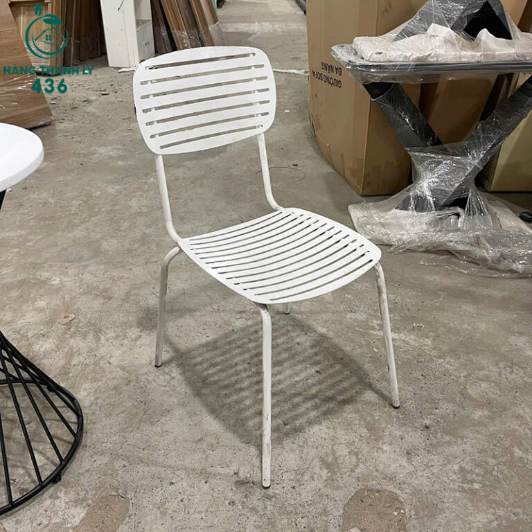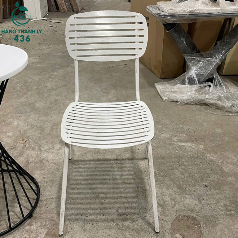 Mô Tả: Sản phẩm ghế sắt sơn tĩnh điện thanh lý là lựa chọn hoàn hảo cho các không gian quán cafe ngoài trời, sân vườn hoặc ban công gia đình. Với chất liệu sắt đặc dày dặn, ghế được phủ lớp sơn tĩnh điện màu trắng tinh khôi giúp bảo vệ bề mặt tối đa trước các tác động của thời tiết, hạn chế tình trạng gỉ sét hay bong tróc. Thiết kế dạng nan thưa không chỉ tạo nên vẻ ngoài thanh thoát, hiện đại mà còn mang lại cảm giác thông thoáng, mát mẻ khi ngồi lâu. Phần tựa lưng được uốn cong nhẹ nhàng giúp ôm sát cơ thể, tạo tư thế ngồi thoải mái nhất cho khách hàng. Kết cấu chân ghế chắc chắn, chịu lực tốt và dễ dàng chồng xếp gọn gàng khi không sử dụng, giúp tối ưu diện tích quán.