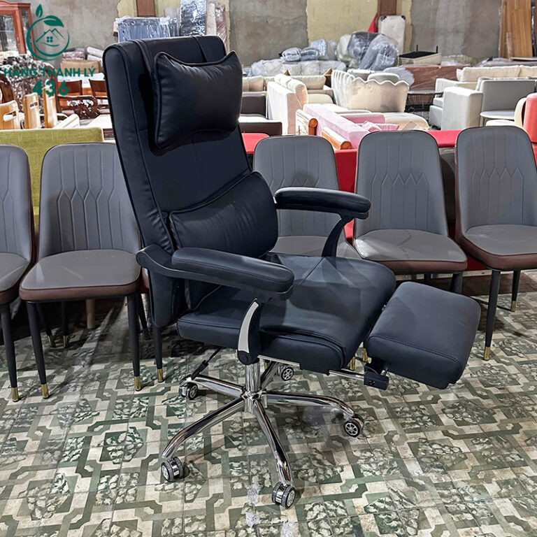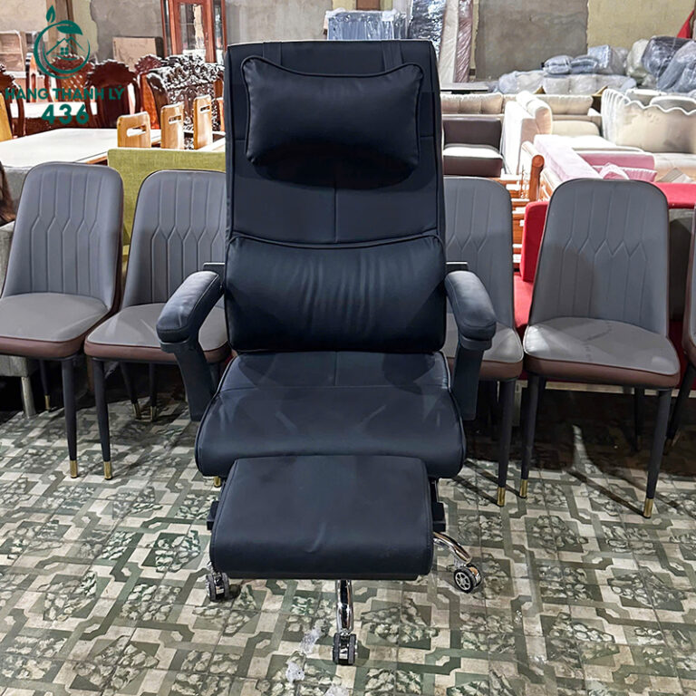- Mô Tả: Chiếc ghế giám đốc này có thiết kế cao cấp với chất liệu da mềm mại, mang đến sự thoải mái tối đa trong suốt thời gian dài sử dụng. Màu đen sang trọng kết hợp với cấu trúc vững chắc, tạo điểm nhấn cho không gian văn phòng hiện đại. Ghế được trang bị tựa đầu và đệm lưng hỗ trợ, giúp giảm căng thẳng và mang lại cảm giác thư giãn. Chân xoay 360 độ và bánh xe di chuyển linh hoạt, giúp người sử dụng dễ dàng di chuyển và điều chỉnh ghế theo ý muốn. Đây là sự lựa chọn lý tưởng cho những không gian làm việc chuyên nghiệp, góp phần tạo sự thoải mái và nâng cao hiệu quả công việc.