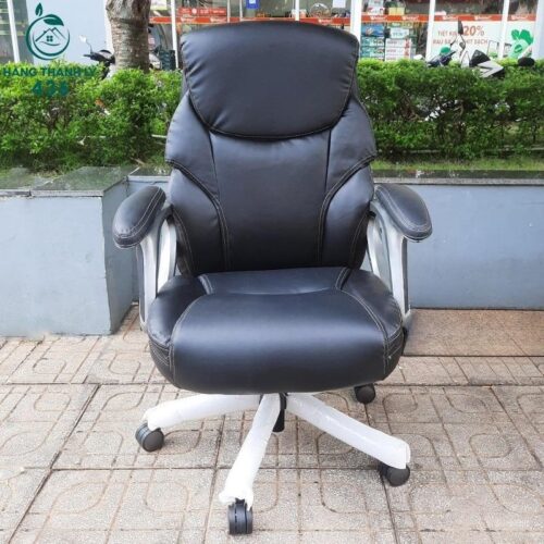 - Mô tả: Ghế giám đốc da cao cấp với thiết kế sang trọng và thoải mái. Ghế có đệm ngồi và tựa lưng dày dặn, bọc da màu đen, tạo cảm giác êm ái và phong cách cho không gian làm việc. Ghế có tay vịn bọc da, khung ghế chắc chắn và chân xoay linh hoạt, giúp dễ dàng di chuyển. Tựa lưng cao hỗ trợ cột sống, giúp người ngồi có tư thế thoải mái suốt cả ngày làm việc.
