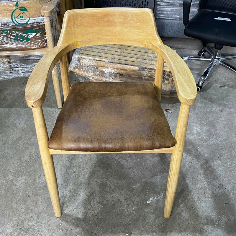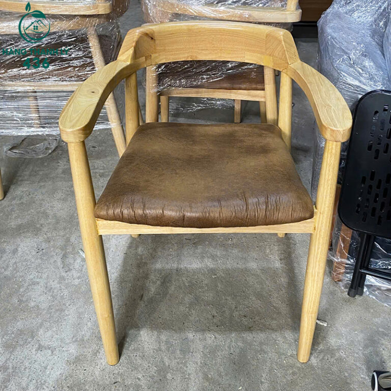 Mô Tả: Ghế gỗ có thiết kế tựa lưng cong liền tay vịn, form dáng thấp, ngồi chắc và rất thoải mái. Phần khung ghế làm từ gỗ tự nhiên, vân gỗ đẹp, kết cấu cứng cáp, sử dụng ổn định lâu dài. Mặt ngồi bọc nệm dày, độ đàn hồi tốt, giúp ngồi lâu không bị mỏi. Kiểu dáng ghế đơn giản nhưng tinh tế, dễ phối với nhiều không gian khác nhau như quán cafe, nhà hàng, phòng ăn gia đình hoặc khu tiếp khách.