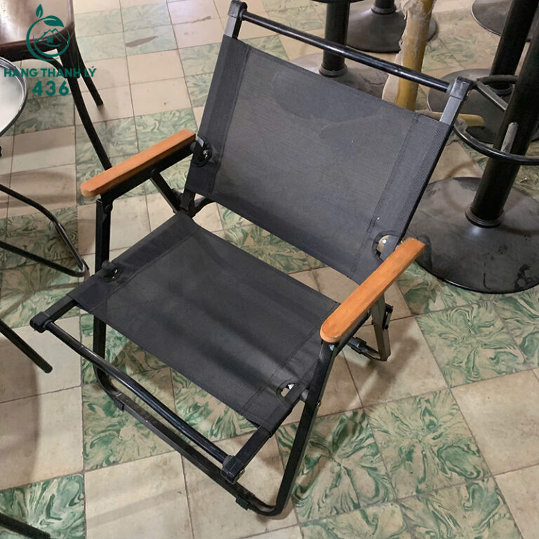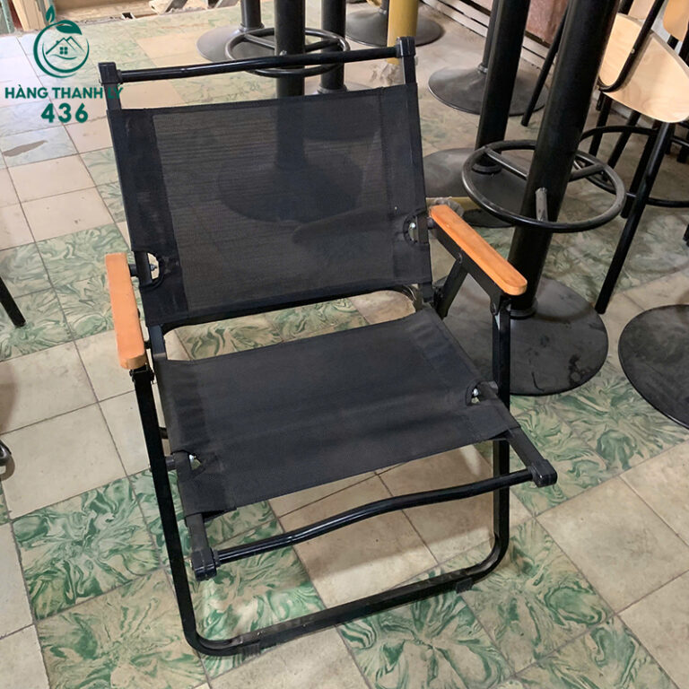 Mô Tả: Sản phẩm ghế xếp cafe phong cách camping là lựa chọn hoàn hảo cho các không gian quán nước hiện đại hoặc dùng cho các chuyến du lịch dã ngoại gia đình. Với khung sắt sơn tĩnh điện màu đen chắc chắn, ghế đảm bảo khả năng chịu lực tốt và độ bền cao trong suốt quá trình sử dụng. Phần mặt ngồi và tựa lưng được làm từ vải lưới chuyên dụng, mang lại cảm giác vô cùng thông thoáng và dễ chịu. Điểm nhấn đặc biệt là phần tay vịn bằng gỗ tự nhiên vừa tạo sự sang trọng, vừa mang lại cảm giác thoải mái khi tựa tay. Thiết kế ghế có thể gấp gọn nhanh chóng, giúp việc sắp xếp và di chuyển trở nên vô cùng đơn giản. Đây là giải pháp nội thất vừa thẩm mỹ, vừa tiện lợi với mức chi phí thanh lý cực kỳ ưu đãi.