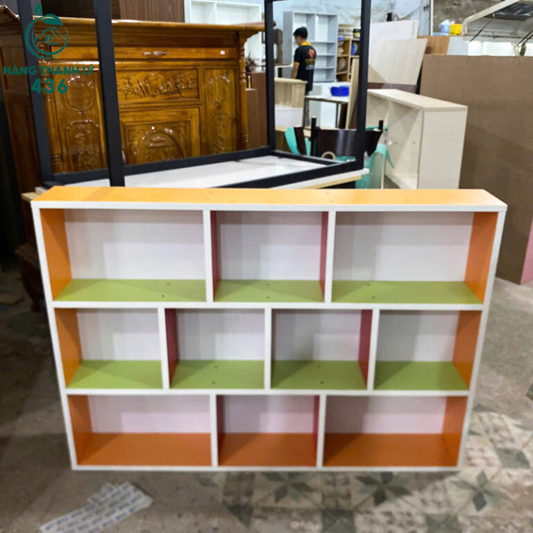 - Mô Tả: Kệ sách được thiết kế dạng nhiều ngăn giúp phân chia không gian lưu trữ rõ ràng, thuận tiện cho việc sắp xếp sách vở, đồ trang trí hoặc vật dụng cá nhân. Kiểu dáng ngang giúp dễ bố trí trong phòng học, phòng ngủ hoặc phòng trọ có diện tích vừa và nhỏ. Chất liệu gỗ công nghiệp chắc chắn, bề mặt dễ lau chùi và sử dụng ổn định trong thời gian dài. Màu sắc phối giữa trắng, cam và xanh tạo điểm nhấn nổi bật, giúp không gian trở nên sinh động và gọn gàng hơn.