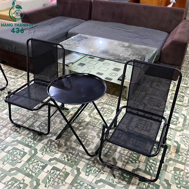 Mẫu bàn ghế cafe quán cóc màu đen, lưng lưới bàn tròn gấp gọn