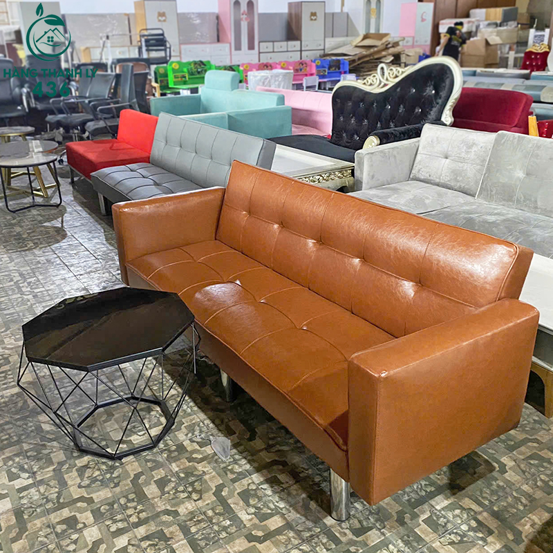 Thanh Lý Băng Sofa Bed Bọc Da Nâu Sang Trọng Hàng Mới 99%