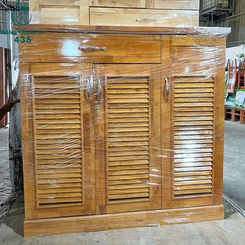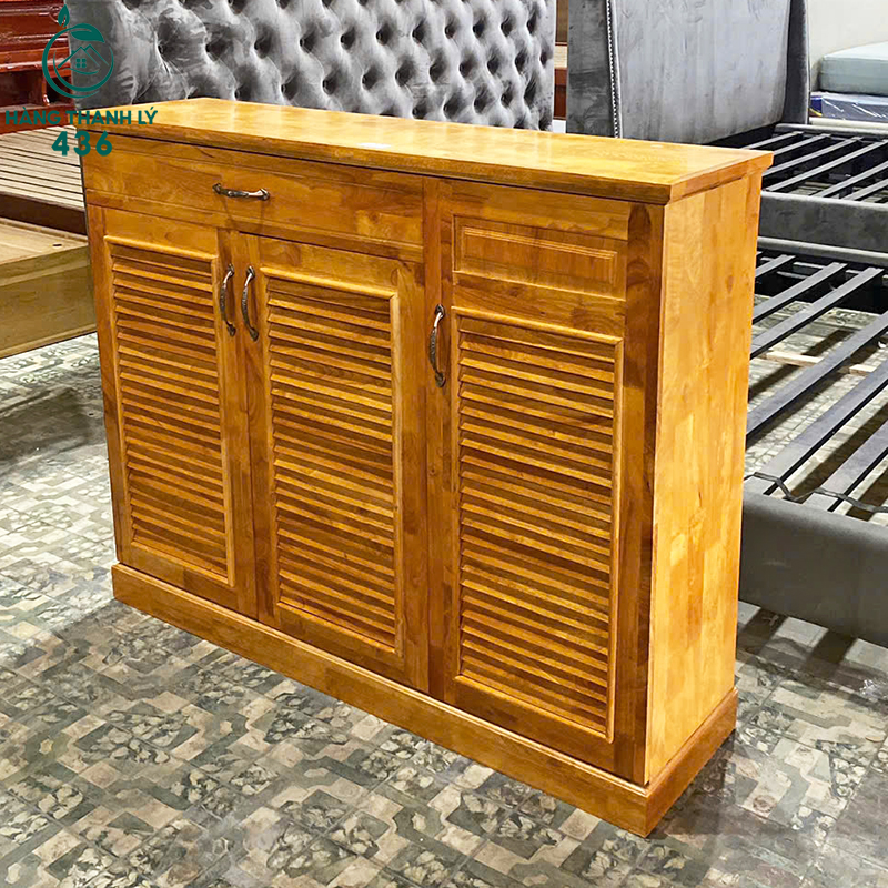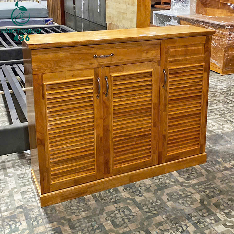 - Mô Tả: Tủ giày dép bằng gỗ với thiết kế đơn giản, thanh lịch và tiện dụng dành cho không gian nội thất gia đình. Tủ có màu nâu gỗ tự nhiên ấm áp, dễ dàng hòa hợp với nhiều kiểu không gian nội thất từ hiện đại đến truyền thống. Cấu trúc gồm một ngăn kéo nhỏ phía trên để đựng phụ kiện như chìa khóa, vớ, xi đánh giày, kết hợp với ba cánh tủ bên dưới dạng nan chớp giúp thông thoáng, hạn chế ẩm mốc và mùi hôi cho giày dép. Tay nắm kim loại chắc chắn, tiện lợi khi sử dụng. Tủ có kích thước gọn gàng, lý tưởng để đặt ở khu vực cửa ra vào, hành lang hay sảnh nhà. Với chất liệu gỗ chắc chắn và độ hoàn thiện tốt, đây là giải pháp lưu trữ giày dép vừa thẩm mỹ, vừa gọn gàng cho mọi gia đình.