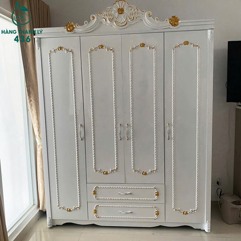 Thanh Lý Tủ Quần Áo 4 Cánh Kiểu Tân Cổ Điển Mới 99%