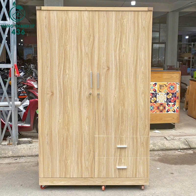 - Mô tả: Tủ quần áo gỗ 2 cánh có thiết kế đơn giản, hiện đại, phù hợp với mọi không gian phòng ngủ. Với hai cánh cửa mở, tủ có không gian rộng rãi, chia thành các ngăn treo đồ và kệ lưu trữ phía dưới, giúp bạn sắp xếp quần áo một cách ngăn nắp. Phía dưới tủ còn có hai ngăn kéo giúp cất giữ đồ dùng nhỏ gọn như phụ kiện hoặc đồ lót. Chất liệu gỗ bền đẹp, chống trầy xước và dễ dàng vệ sinh. Tủ còn được trang bị bánh xe giúp di chuyển dễ dàng. Với kiểu dáng gọn gàng, màu sắc nhẹ nhàng, sản phẩm là lựa chọn lý tưởng cho những không gian sống cần sự tiện nghi và tiết kiệm diện tích.