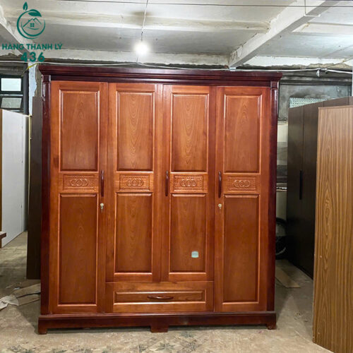 Tủ Quần Áo Gỗ Tự Nhiên 4 Cánh Mới 90%