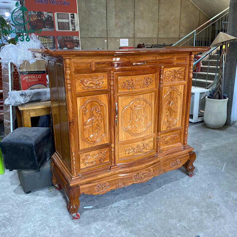 Tủ Thờ Gỗ Gõ Đỏ Mới Chạm Rồng Tinh Xảo 99%