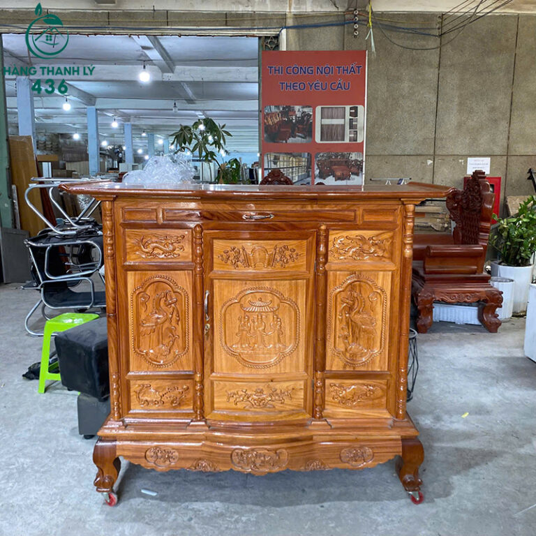 Mời bạn ghé xem thêm nhiều mẫu bàn thờ gia tiên thanh lý tại trang chủ của chúng tôi để có thêm sự lựa chọn. Mọi thắc mắc về giá cả hoặc vận chuyển xin vui lòng gọi điện hoặc nhắn Zalo để được nhân viên hỗ trợ nhanh chóng. Bạn cũng có thể đến trực tiếp kho Hàng Thanh Lý 436 xem chất lượng gỗ thực tế trước khi quyết định mua hàng.