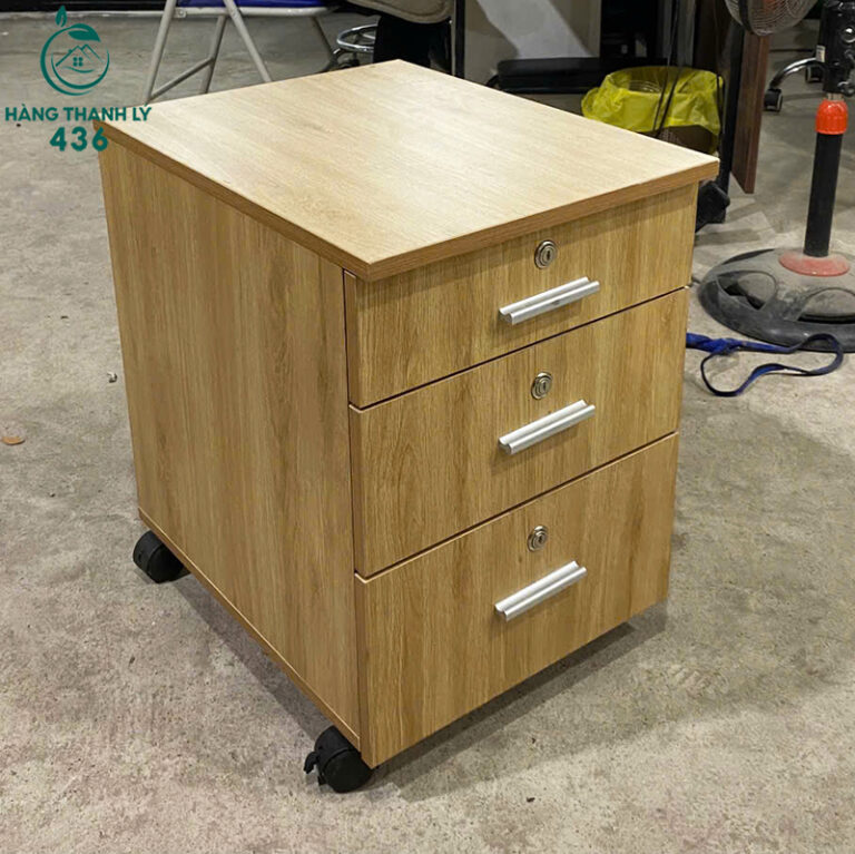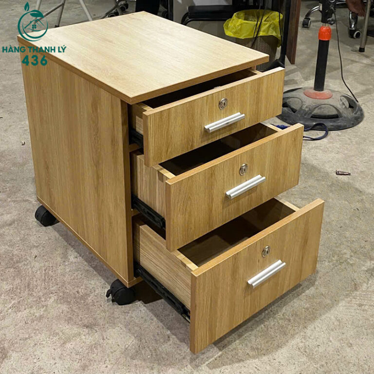 - Mô Tả: Hộc tủ gỗ 3 ngăn cũ với thiết kế vuông vắn, dễ kết hợp cùng nhiều kiểu bàn làm việc. Từng ngăn đều có tay nắm nhôm chắc chắn, mở kéo nhẹ tay và có khóa riêng để bảo mật giấy tờ quan trọng. Chất gỗ công nghiệp phủ melamine giúp bề mặt hạn chế trầy, dễ lau chùi và sử dụng lâu dài. Kích thước nhỏ gọn đặt gầm bàn, không chiếm diện tích và phù hợp văn phòng, công ty hoặc góc làm việc tại nhà.