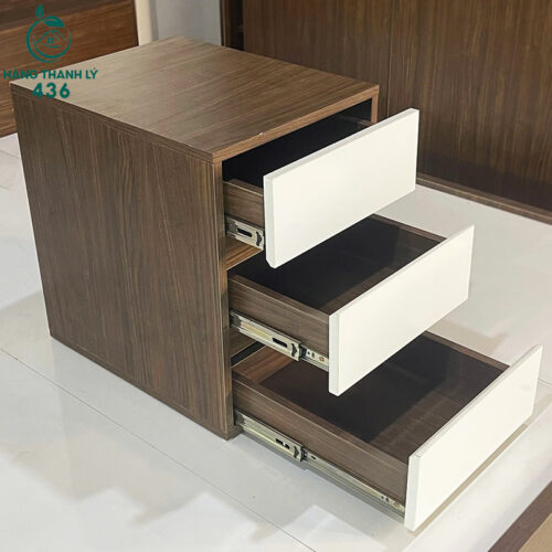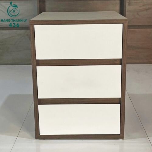 - Mô tả: Tủ đầu giường cũ với thiết kế hiện đại, kết hợp tông màu trắng và nâu gỗ, tạo điểm nhấn tinh tế cho không gian phòng ngủ. Sản phẩm có 2 ngăn kéo rộng rãi, giúp bạn cất giữ sách, điện thoại, bộ sạc hoặc các vật dụng cá nhân một cách gọn gàng. Bề mặt trên cùng đủ rộng để đặt đèn ngủ, ly nước hoặc đồ trang trí nhỏ. Các ngăn kéo trượt êm, tay nắm đơn giản, thuận tiện khi đóng mở. Đây là lựa chọn hoàn hảo cho những ai đang tìm kiếm một chiếc tủ đầu giường vừa túi tiền nhưng vẫn đáp ứng tốt về công năng và thẩm mỹ.
