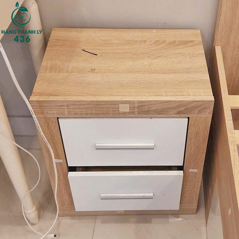 Tủ Đầu Giường Cũ Gỗ Phối Trắng 2 Ngăn Kéo Tiện Lợi