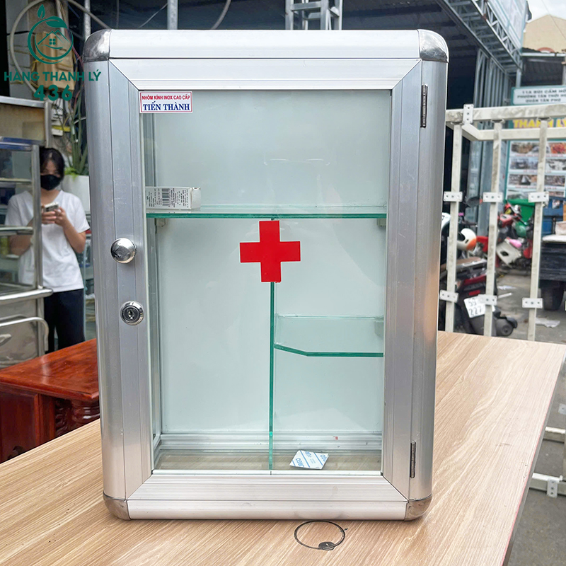 - Mô Tả: Tủ y tế có thiết kế nhỏ gọn, hình chữ nhật đứng, với kết cấu chắc chắn từ khung nhôm sáng bóng kết hợp kính cường lực trong suốt. Mặt trước là cửa kính trong viền nhôm, nổi bật với biểu tượng chữ thập đỏ đặc trưng giúp dễ nhận biết trong trường hợp khẩn cấp. Bên trong được chia thành hai ngăn bằng kính, thuận tiện cho việc sắp xếp băng gạc, thuốc men và vật dụng y tế một cách ngăn nắp. Phù hợp sử dụng trong gia đình, cửa hàng, văn phòng hoặc cơ sở kinh doanh nhỏ để đảm bảo an toàn sức khỏe. Nhỏ gọn nhưng hữu ích, tủ có thể treo tường hoặc đặt bàn tùy theo không gian, góp phần tạo nên sự chuyên nghiệp và chu đáo cho nơi làm việc.