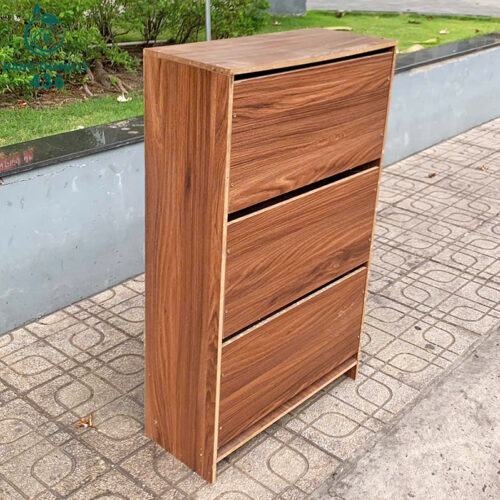 - Mô tả: Tủ giày dép 3 tầng có thiết kế thông minh, giúp sắp xếp giày dép gọn gàng và tránh bám bụi. Mỗi ngăn có cơ chế lật mở, dễ dàng lấy hoặc cất giày mà không chiếm nhiều diện tích. Bề mặt gỗ phủ màu vân gỗ tự nhiên, phù hợp với nhiều không gian như cửa ra vào, phòng ngủ hoặc văn phòng. Các cạnh tủ được gia công kỹ, bo góc an toàn, không gây trầy xước khi sử dụng. Phù hợp cho gia đình từ 2-4 thành viên với sức chứa lớn.