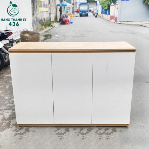 - Mô tả: Tủ gỗ 3 cánh màu trắng với mặt gỗ, thiết kế hiện đại và gọn gàng, phù hợp cho nhiều mục đích sử dụng như tủ hồ sơ hoặc tủ lưu trữ đồ dùng. Tủ có chiều ngang 1m3, kích thước hợp lý, giúp tối ưu diện tích sử dụng trong các căn phòng nhỏ hẹp. Các cánh tủ đóng mở nhẹ nhàng, không gây tiếng quá ồn. Sản phẩm có thể dùng trong nhiều không gian khác nhau từ văn phòng đến gia đình.
