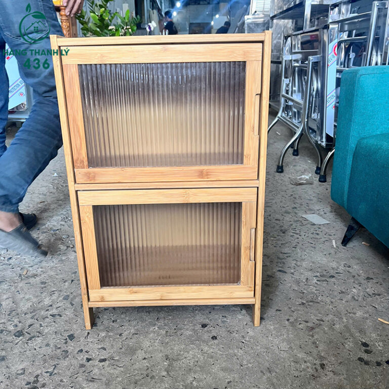 Mô Tả: Mẫu tủ gỗ cũ thiết kế dạng đứng nhỏ gọn, chia làm 2 khoang riêng biệt giúp sắp xếp đồ dùng gọn gàng và dễ tìm. Cánh tủ kính sọc mờ vừa che bớt đồ bên trong vừa tạo cảm giác gọn gàng, sạch sẽ khi đặt trong không gian sử dụng. Bên trong có đợt chia tầng, phù hợp để chén bát, đồ khô, sách vở hoặc vật dụng gia đình, quán cafe nhỏ. Tủ gỗ chắc chắn, đóng mở nhẹ tay, dễ kê sát tường, tiết kiệm diện tích mà vẫn đáp ứng nhu cầu lưu trữ cơ bản.