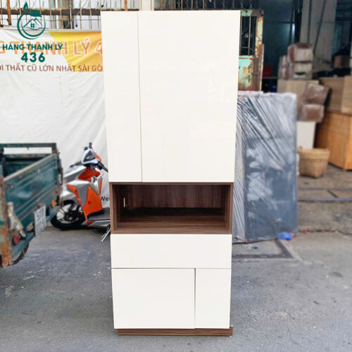 - Mô tả: Tủ gỗ đứng cũ này có chiều cao 2m1, mang lại không gian lưu trữ rộng rãi với các ngăn kéo và kệ phù hợp để cất giữ đồ đạc trong gia đình hoặc văn phòng. Tủ được thiết kế với màu sắc nâu ấm áp, kết hợp cánh trắng, mang đến sự sang trọng và dễ dàng kết hợp với nhiều kiểu không gian nội thất. Đặc biệt, tủ có thiết kế đa năng, với các ngăn kệ và ngăn kéo giúp bạn sắp xếp và tổ chức đồ đạc một cách dễ dàng. Chất liệu gỗ chắc chắn, bền đẹp, là lựa chọn lý tưởng cho những ai cần sự tiện ích và tính thẩm mỹ trong một sản phẩm nội thất.