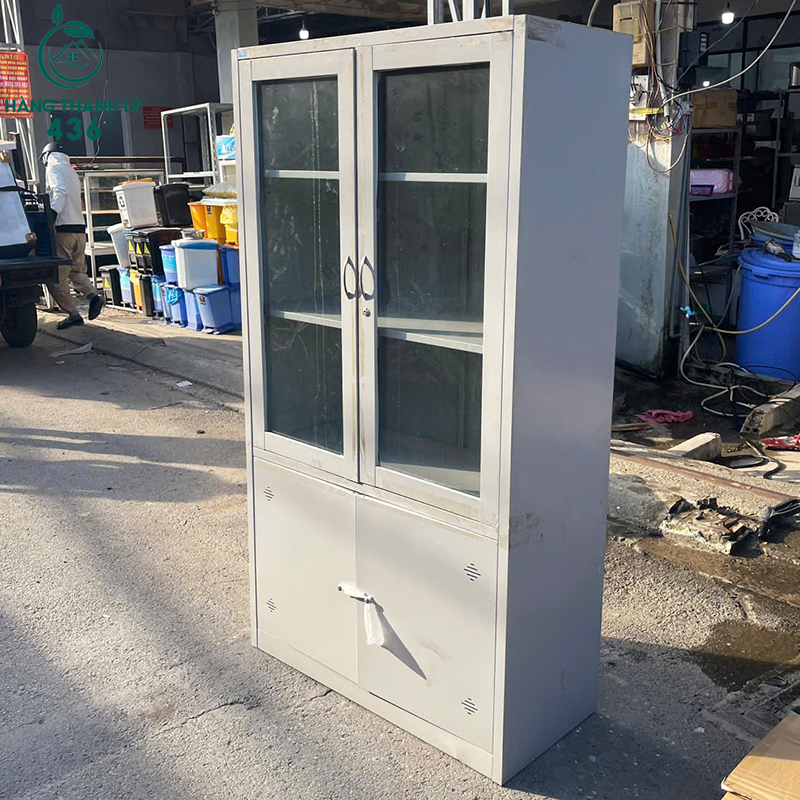 Thanh Lý Tủ Hồ Sơ Sắt Cửa Kính Đứng Cao Nhiều Ngăn Mới 90%