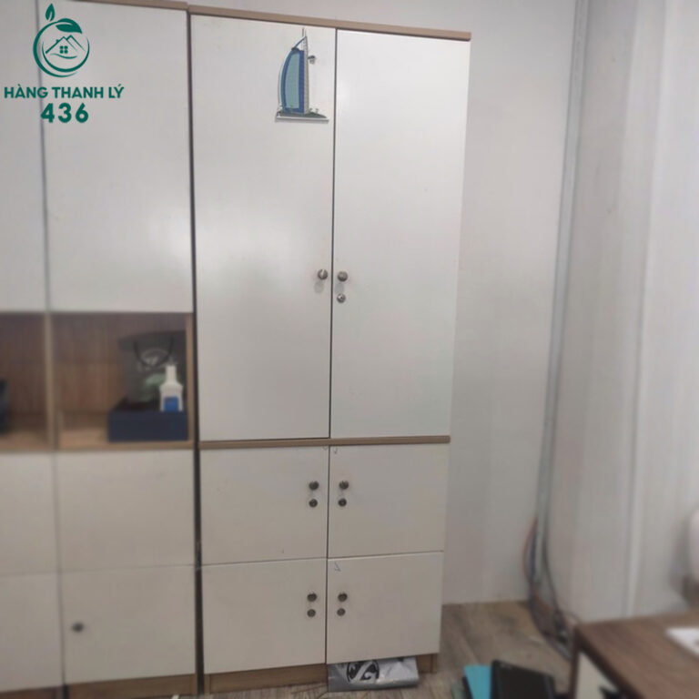Mô Tả: Mẫu tủ hồ sơ thanh lý này là giải pháp lưu trữ tuyệt vời cho các văn phòng cần sự gọn gàng và tính bảo mật cao. Sản phẩm gây ấn tượng với thiết kế nhiều ngăn riêng biệt, mỗi ngăn đều được trang bị ổ khóa an toàn, giúp nhân viên thoải mái lưu giữ tài liệu hoặc đồ dùng cá nhân. Sự kết hợp giữa tông màu trắng chủ đạo và các điểm nhấn vân gỗ mang lại vẻ đẹp thanh lịch, chuyên nghiệp cho không gian làm việc hiện đại. Chất liệu gỗ công nghiệp cao cấp giúp tủ có kết cấu vô cùng vững chãi, chống ẩm mốc tốt và dễ dàng vệ sinh. Với chiều cao tối ưu, tủ cung cấp không gian lưu trữ cực lớn nhưng lại chiếm ít diện tích mặt sàn, giúp tối ưu hóa không gian văn phòng hiệu quả.