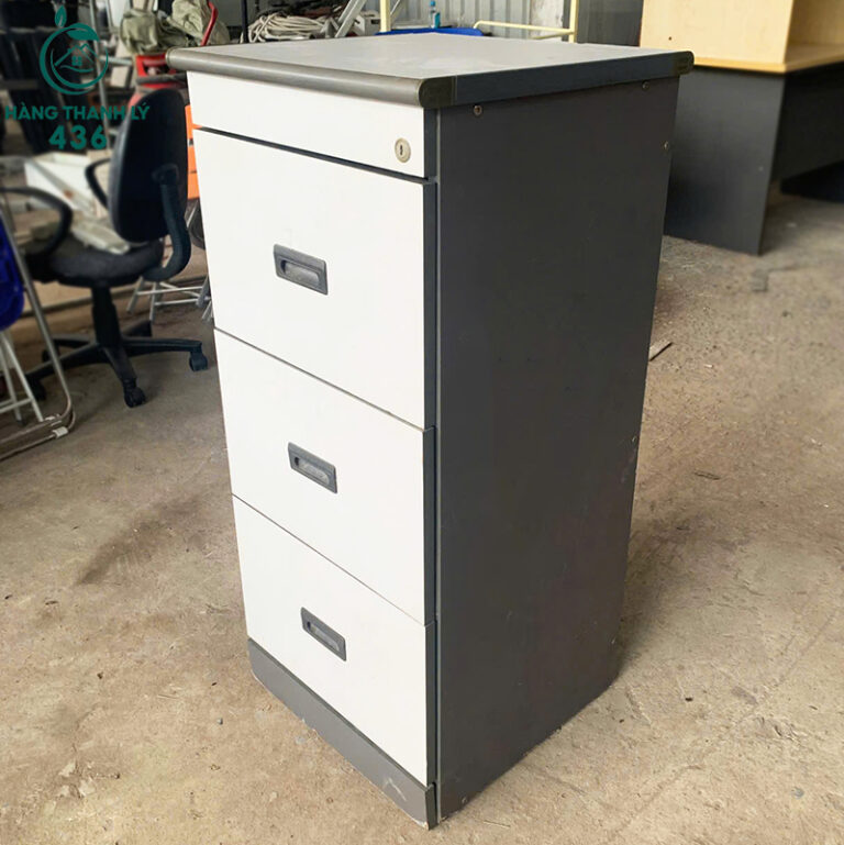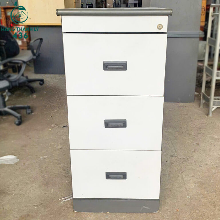 - Mô tả: Tủ hồ sơ cũ 3 ngăn kéo thiết kế dạng đứng, giúp tối ưu không gian lưu trữ hồ sơ, giấy tờ, vật dụng cá nhân trong văn phòng làm việc, phòng kế toán, thư viện hoặc sử dụng tại nhà. Bề mặt tủ màu trắng xám trung tính, sạch sẽ, dễ kết hợp với các nội thất khác. Mỗi ngăn kéo đều có tay cầm riêng biệt, trượt nhẹ nhàng.