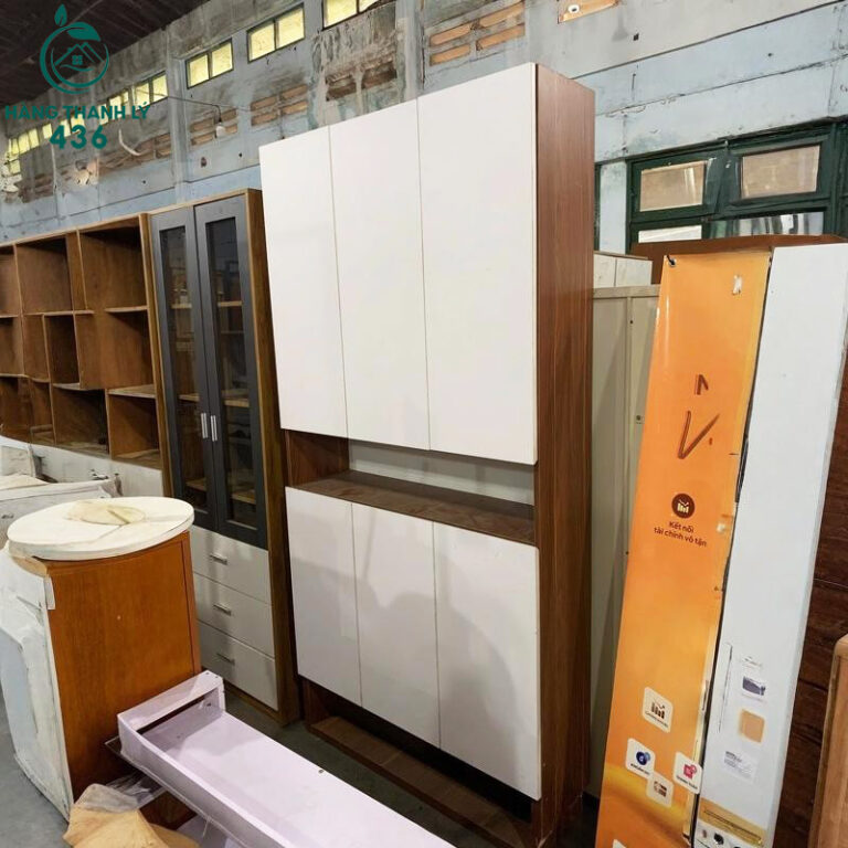 - Mô Tả: Mẫu tủ cao này là giải pháp lưu trữ lý tưởng cho mọi không gian, từ văn phòng công ty đến nhà ở. Tủ được chia thành nhiều ngăn có cánh đóng và ngăn kệ mở, giúp bạn linh hoạt cất giữ hồ sơ, tài liệu quan trọng và trưng bày các vật dụng trang trí, sách vở. Thiết kế màu vân gỗ kết hợp cánh trắng tạo nên vẻ ngoài hiện đại, sạch sẽ. Tủ giúp không gian làm việc hoặc phòng khách của bạn luôn gọn gàng, chuyên nghiệp, dễ dàng tìm kiếm đồ đạc. Mua đồ thanh lý giúp bạn tiết kiệm chi phí mà vẫn đảm bảo được chất lượng sử dụng.