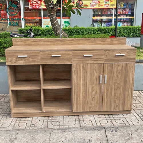 - Mô tả: Tủ kệ gỗ đa năng với thiết kế hiện đại, gồm nhiều ngăn kéo và ô trống giúp tối ưu không gian lưu trữ. Phù hợp để sử dụng trong văn phòng, cửa hàng hoặc gia đình. Ngăn kéo rộng rãi có tay nắm tiện lợi, kết hợp cùng các ô kệ mở để bày trí đồ dùng hoặc tài liệu một cách ngăn nắp. Sản phẩm có màu nâu vân gỗ tự nhiên phù hợp với nhiều phong cách thiết kế. Với thiết kế tiện dụng và vẻ ngoài trang nhã, mẫu tủ kệ này là lựa chọn lý tưởng để sắp xếp gọn gàng đồ dùng trong mọi không gian.