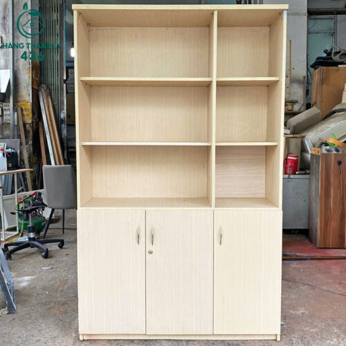 Mô tả: Tủ trưng bày kết hợp lưu trữ với thiết kế thông minh, gồm các ngăn kệ mở phía trên để trưng bày tài liệu, sách hoặc đồ trang trí, và tủ cánh kín bên dưới để lưu trữ đồ dùng quan trọng. Sản phẩm màu gỗ sáng hiện đại, tạo cảm giác nhẹ nhàng và thoáng đãng cho không gian. Chất liệu chắc chắn, bền bỉ, đảm bảo sử dụng lâu dài.