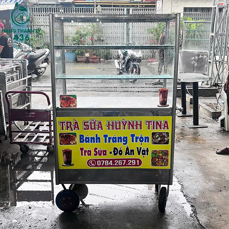 Mô Tả: Xe tủ kính cũ này được làm từ inox và kính cường lực bền đẹp, thiết kế 3 tầng trưng bày thuận tiện cho các quán trà sữa, bánh tráng trộn hoặc đồ ăn vặt. Xe có bánh xe di chuyển dễ dàng, kết hợp ngăn kéo và cánh tủ dưới để chứa nguyên liệu hoặc dụng cụ. Tủ kính giúp giữ thực phẩm sạch sẽ, quan sát dễ dàng và tăng tính chuyên nghiệp cho quán. Với kích thước phù hợp, xe tủ vừa gọn vừa đủ không gian trưng bày, giúp nhân viên thao tác nhanh chóng, tiết kiệm thời gian phục vụ khách hàng.