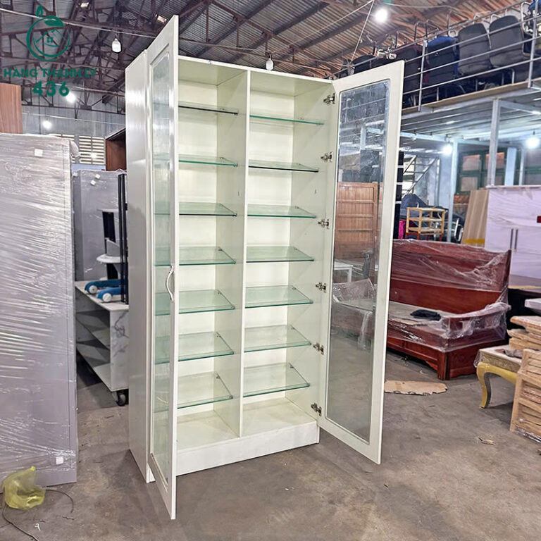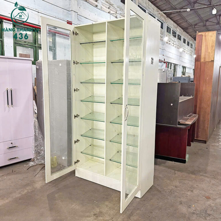 Thanh Lý Tủ Trưng Bày Cũ Có Nhiều Ngăn Màu Trắng