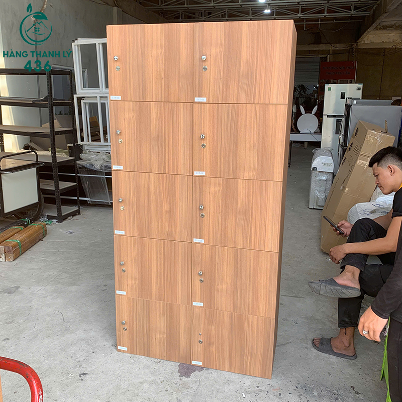 Thanh Lý Tủ Locker 10 Ngăn Gỗ Màu Nâu Mới 90%