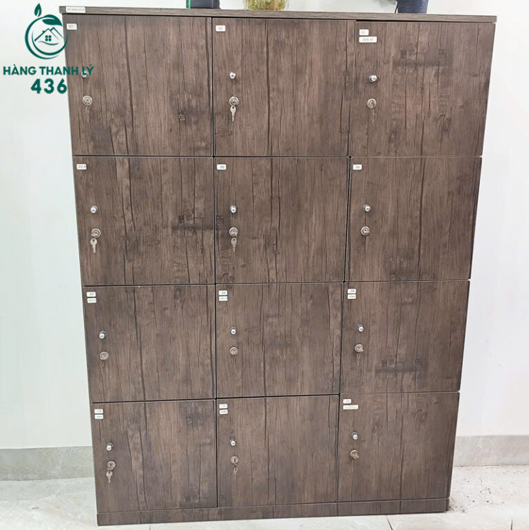 - Mô Tả: Tủ được chia thành 12 ô riêng biệt, đảm bảo tính bảo mật cao cho đồ dùng cá nhân của người sử dụng. Bề mặt tủ được phủ vân gỗ màu nâu đậm, tạo cảm giác sang trọng, chuyên nghiệp hơn so với tủ sắt truyền thống. Kích thước cao, giúp tối ưu hóa không gian lưu trữ mà không chiếm quá nhiều diện tích sàn. Mua tủ locker thanh lý là cách cực kỳ kinh tế để trang bị nội thất đồng bộ, chất lượng tốt cho doanh nghiệp hoặc tổ chức của bạn.