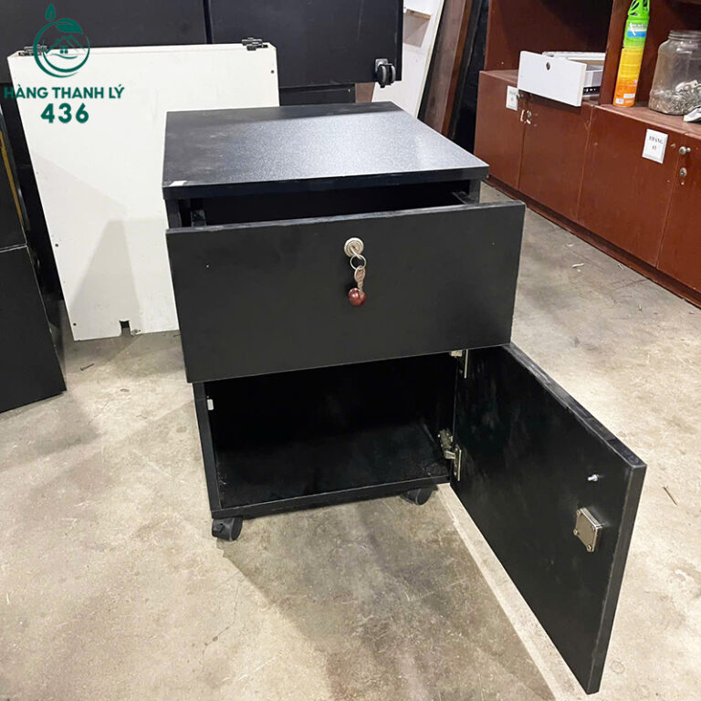 Mô Tả: Mẫu tủ hộc di động thiết kế nhỏ gọn, phù hợp kê dưới bàn làm việc văn phòng. Tủ có ngăn kéo và cánh mở bên dưới giúp lưu trữ hồ sơ, giấy tờ và vật dụng cá nhân gọn gàng. Trang bị khóa an toàn, thuận tiện sử dụng trong môi trường công ty. Màu đen đơn giản, dễ phối với nhiều loại bàn làm việc khác nhau. Tủ hộc thanh lý còn sử dụng tốt, giúp tiết kiệm chi phí so với mua mới.