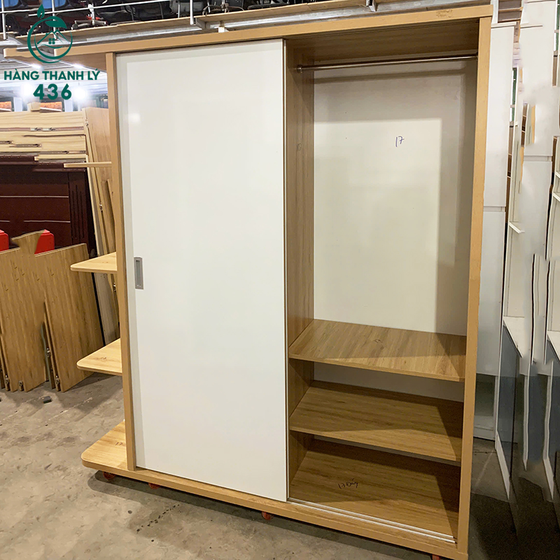Tủ Quần Áo Cũ 1M8X2MX60CM Cửa Lùa Kết Hợp Kệ Trang Trí Bên Hông