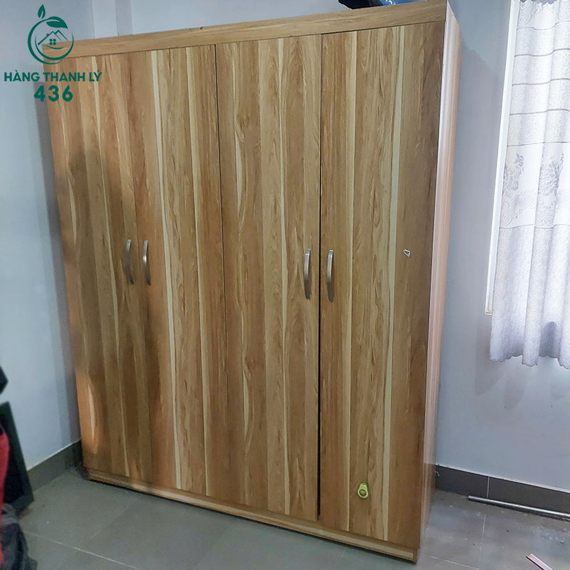 - Mô Tả: Đây là chiếc tủ quần áo 4 cánh với kích thước lớn , rất phù hợp cho các gia đình có nhu cầu lưu trữ nhiều đồ đạc. Tủ làm từ gỗ công nghiệp cao cấp, bề mặt phủ melamine vân gỗ màu sáng, mang lại cảm giác ấm cúng và sạch sẽ cho phòng ngủ. Bên trong tủ chia làm 2 buồng riêng biệt, mỗi buồng đều có thanh treo inox chắc chắn để bạn treo quần áo dài, vest, đầm mà không lo bị nhăn. Tủ có kích thước sâu , chuẩn cho việc treo đồ. Dù là hàng thanh lý, chiếc tủ này còn rất mới, cửa đóng mở êm ái, không bị ọp ẹp. Mua ngay để sở hữu không gian lưu trữ rộng rãi với mức giá cực kỳ tiết kiệm.