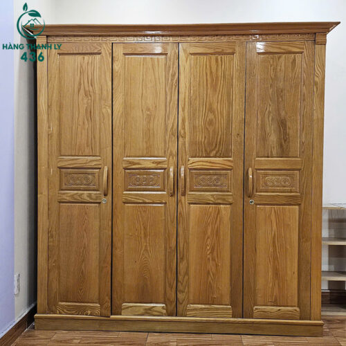 Thanh Lý Tủ Quần Áo 4 Cánh Gỗ Tự Nhiên Mới 90%