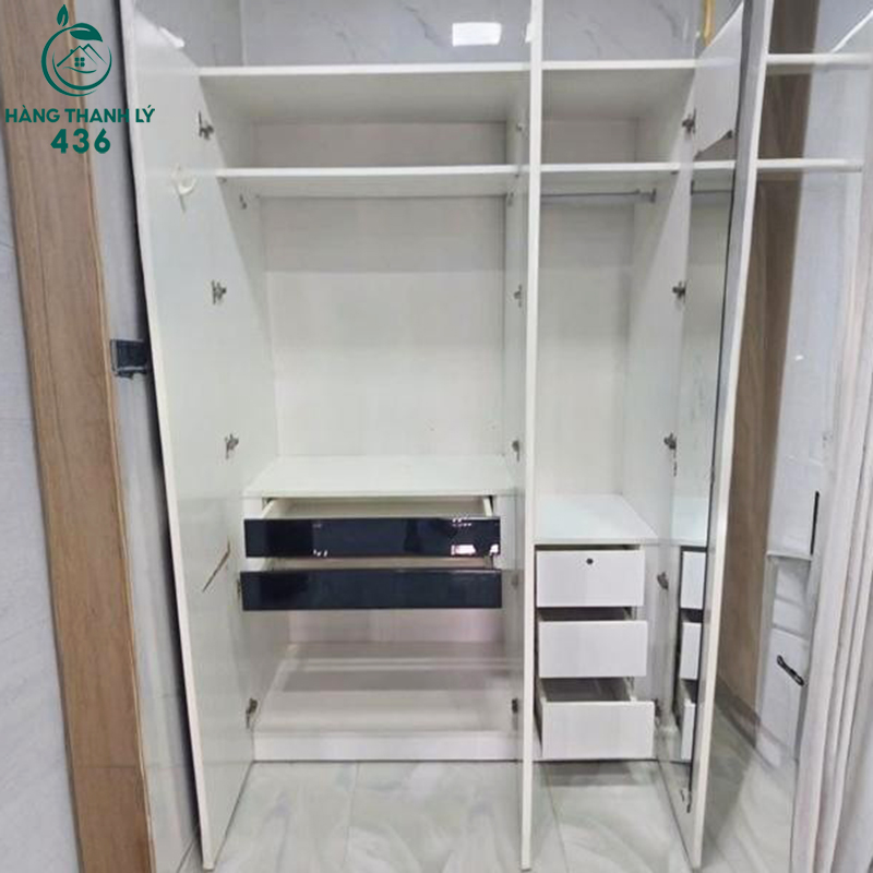 Tủ Quần Áo Cũ Mặt Kính Màu Đen Cửa Mở Sang Trọng
