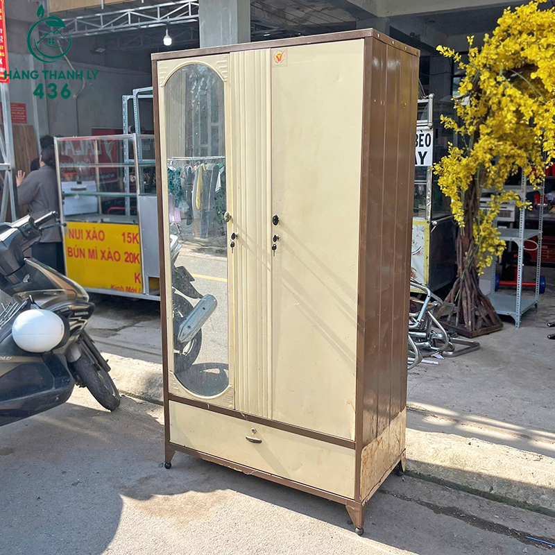 Thanh Lý Tủ Quần Áo Sắt 2 Cánh Có Ngăn Kéo Tiện Lợi