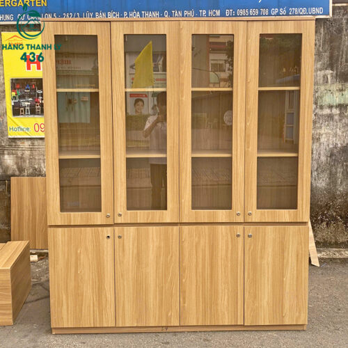 - Mô tả: Tủ hồ sơ 4 cánh kính với thiết kế hiện đại, phù hợp để lưu trữ tài liệu, sách hoặc các vật dụng văn phòng. Phần kính trong suốt giúp bạn dễ dàng nhìn thấy các đồ dùng bên trong, tạo cảm giác gọn gàng và chuyên nghiệp. Dưới tủ là các ngăn kín có khóa, đảm bảo an toàn cho các vật dụng quan trọng.