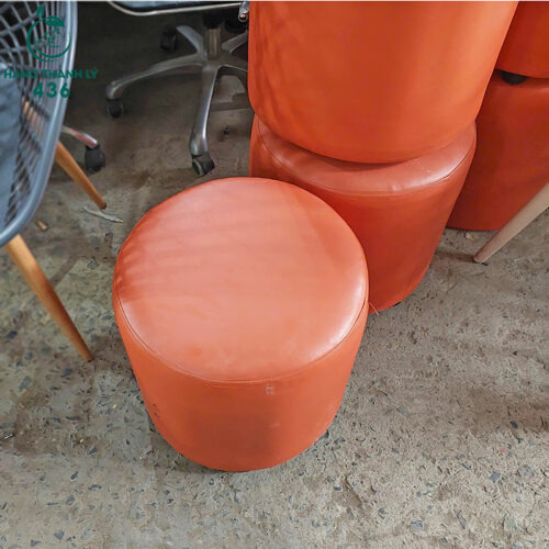 Ghế Đôn Sofa Tròn Cũ Bọc Da Màu Cam