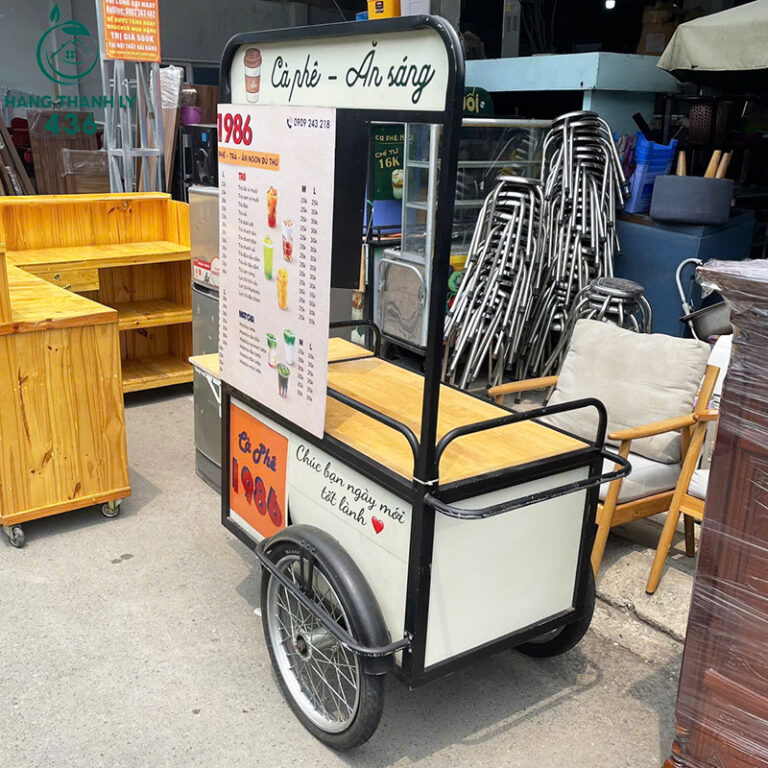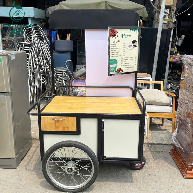 Mô Tả: Xe bán cà phê và ăn sáng cũ với khung sắt chắc chắn và mặt bàn gỗ tiện lợi, phù hợp kinh doanh di động hoặc bán hàng vỉa hè. Sản phẩm gồm 1 ngăn kéo và 1 tủ nhỏ, giúp lưu trữ dụng cụ, nguyên liệu và đồ dùng gọn gàng. Xe có bánh xe dễ di chuyển, thiết kế gọn gàng, phù hợp không gian nhỏ và dễ vận hành. Mới 90%, vẫn còn bền chắc, giúp bạn mở quầy hàng nhanh chóng mà tiết kiệm chi phí. Đây là giải pháp hoàn hảo cho ai muốn kinh doanh linh hoạt mà không cần đầu tư lớn.